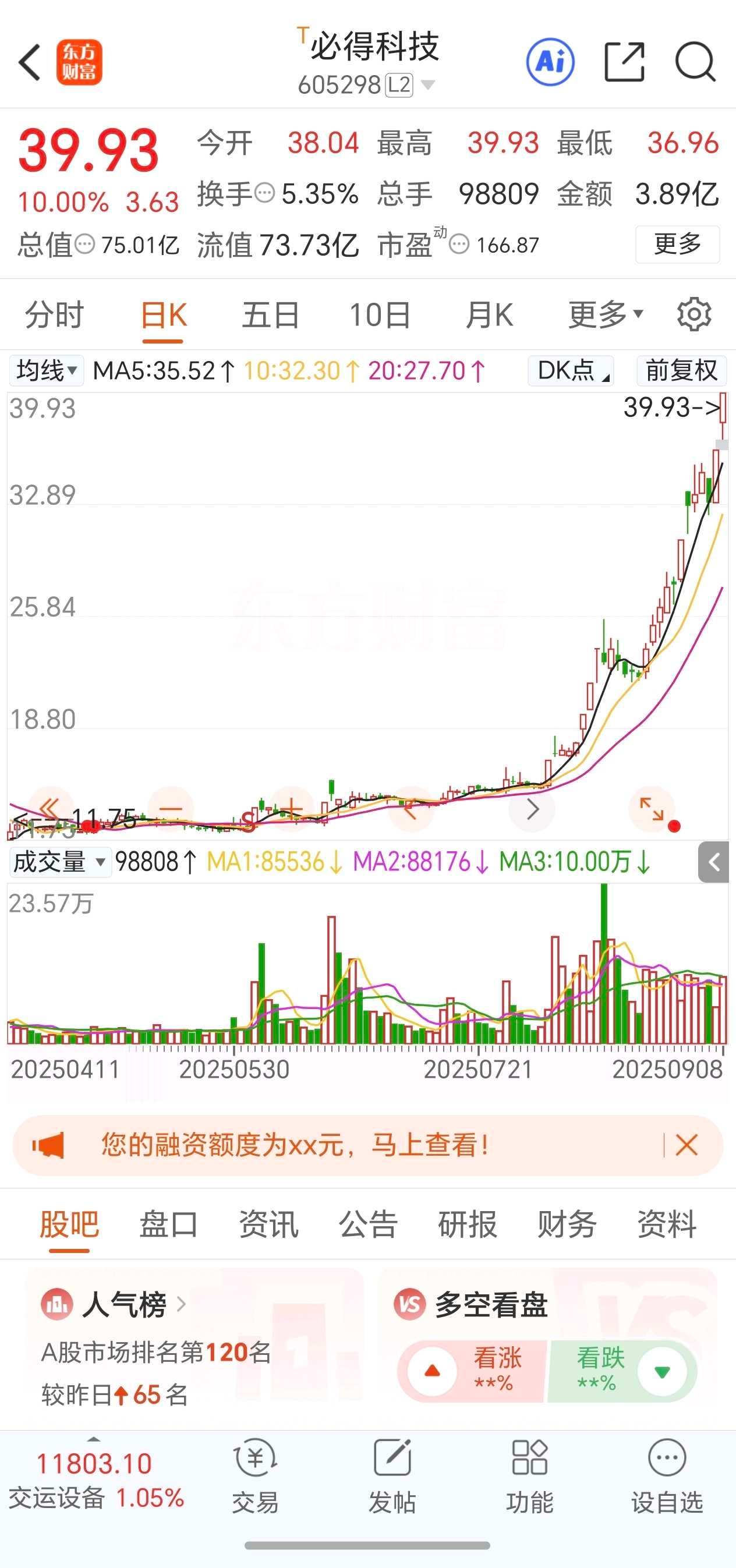 必得科技:2板,换手板,炒作半导体资产注入预期+轨道交通+高铁。