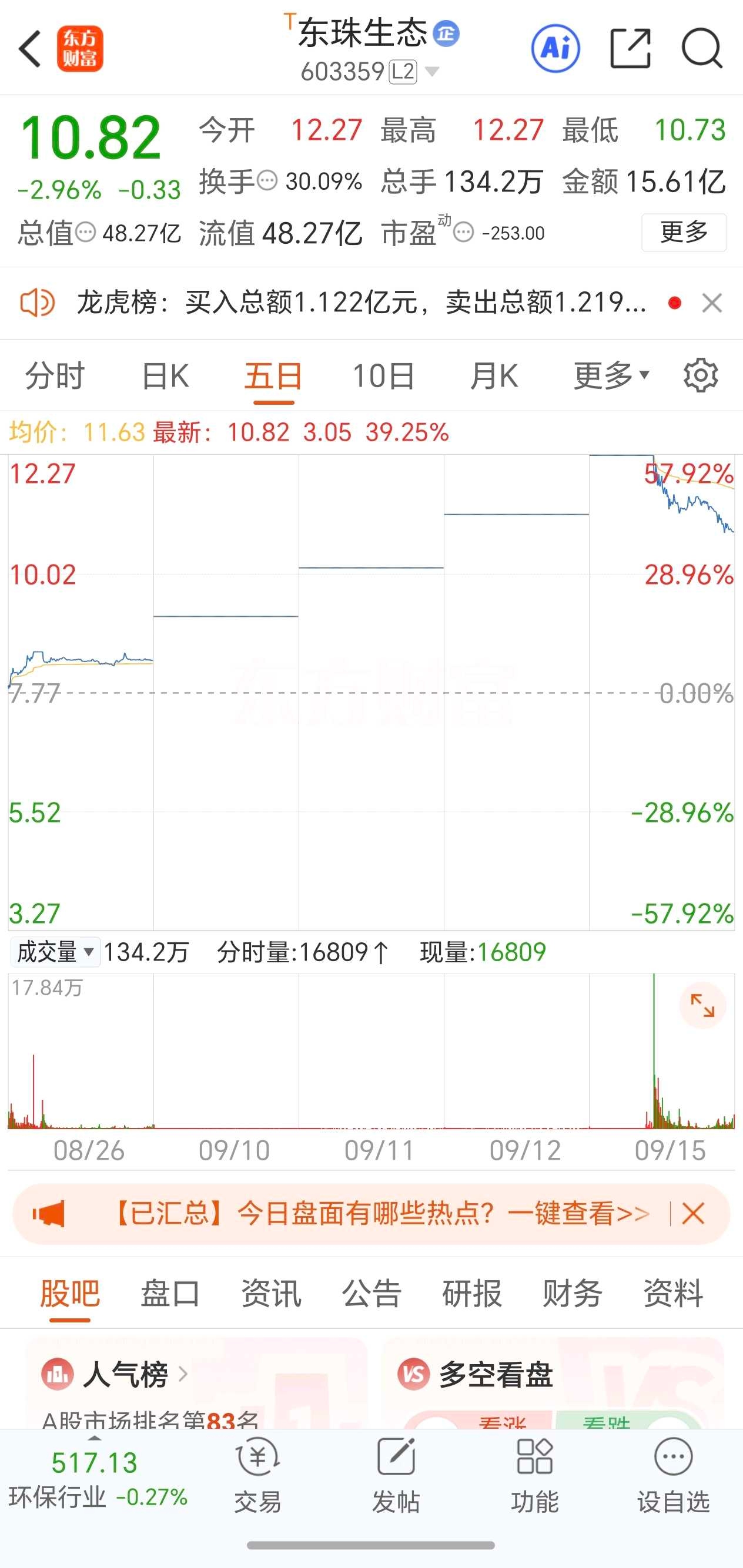 东珠生态:3进4一字板炸板,炒作拟收购凯睿星通+进军卫星通信+园林生态。
