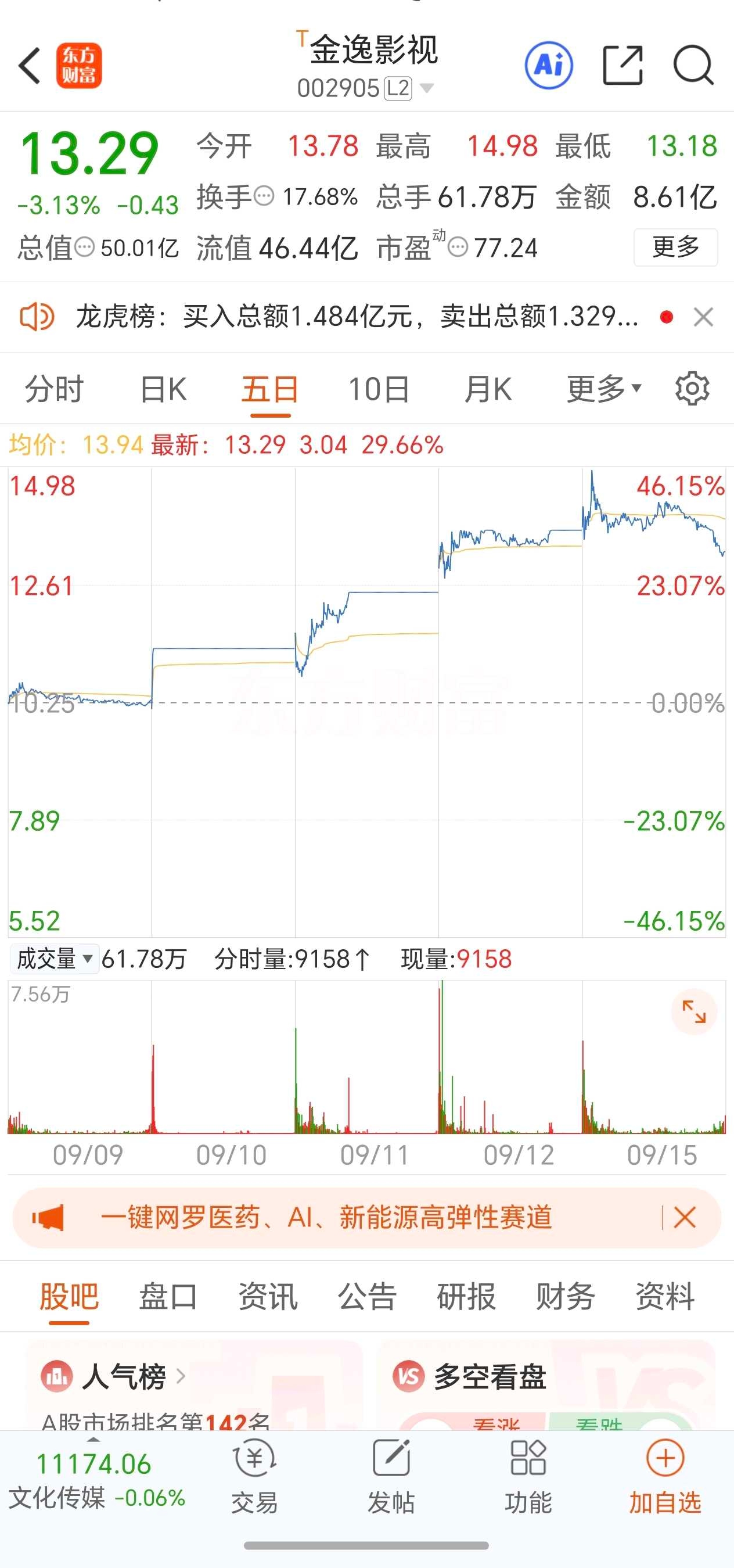 金逸影视:3进4断板,炒作大消费+影视影院+抖音短视频+职业教育。