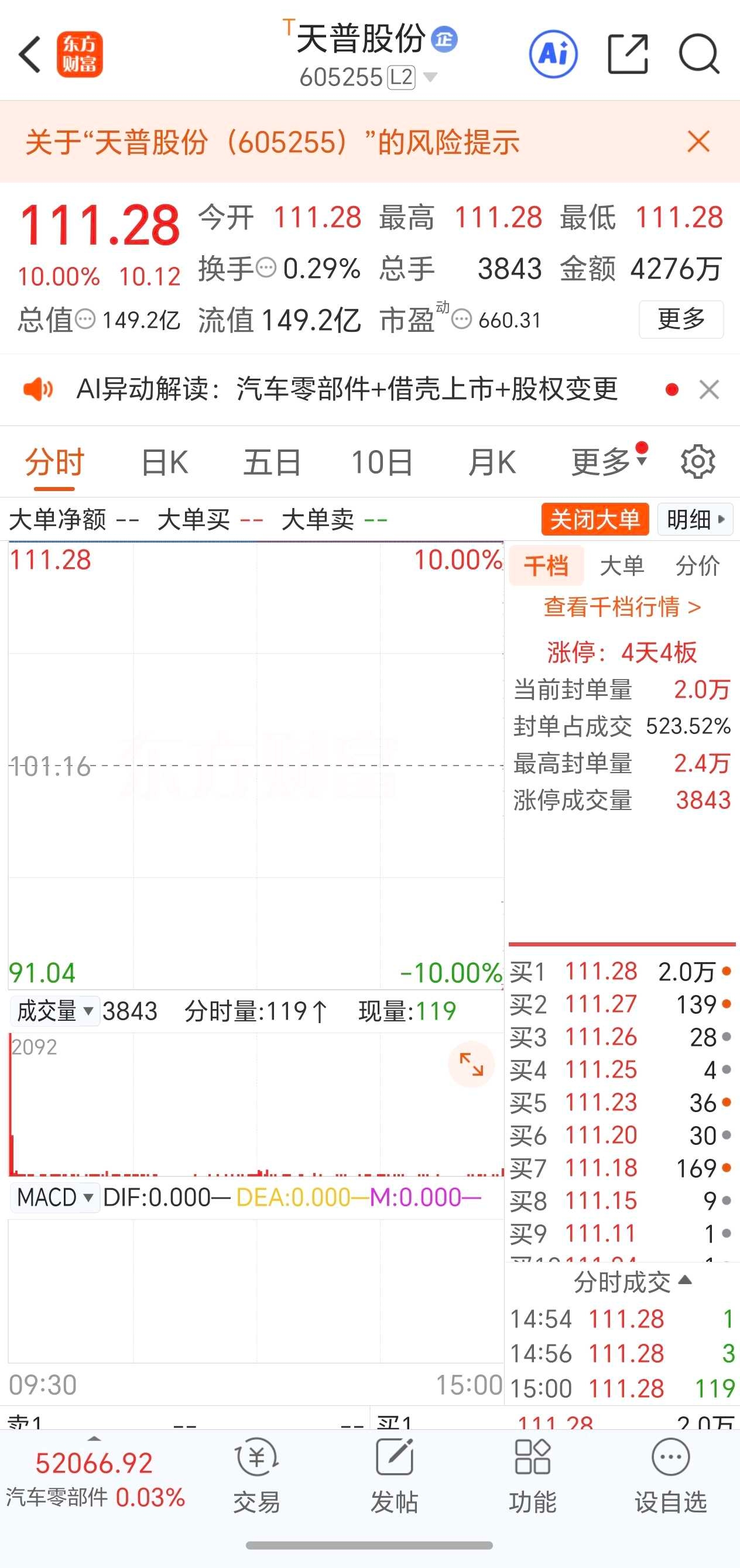 天普股份:15板,一字板,炒作芯片+中昊芯英拟入主。