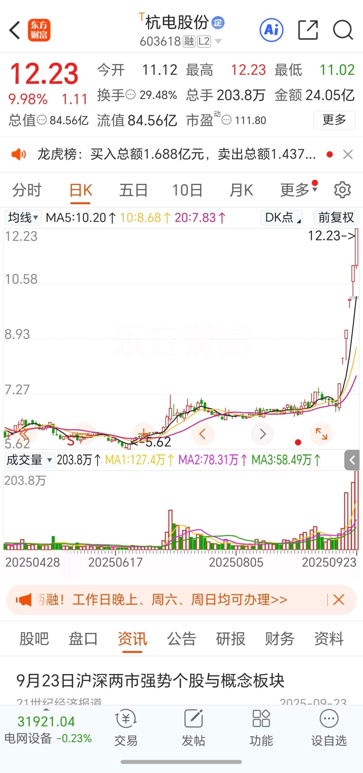 杭电股份:6板,弱板,炒作宇树机器人(电缆)+光通信+锂电铜箔。