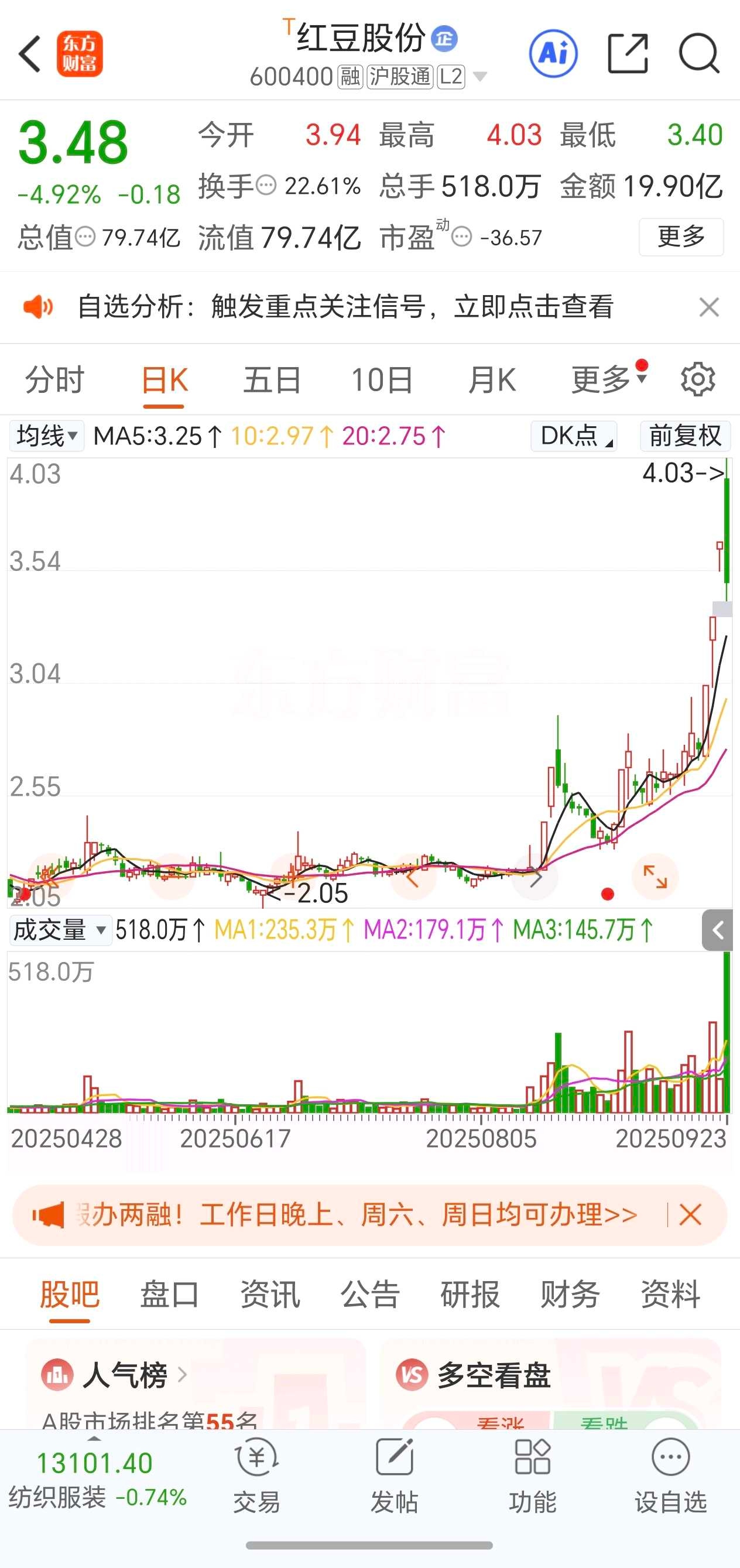 红豆股份:3进4炸板,炒作低价股+纺织服装。
