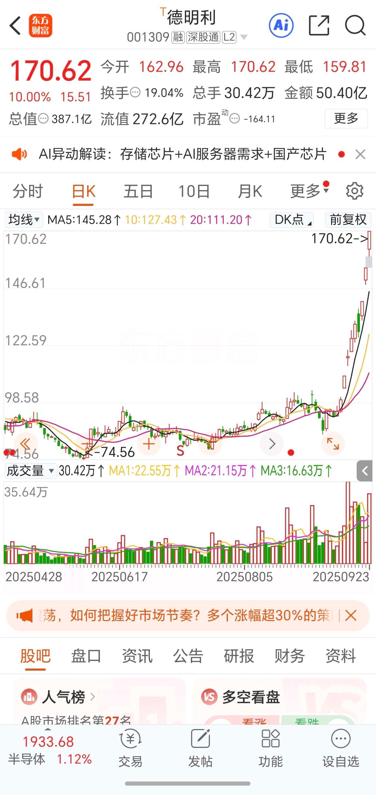 德明利:3板,弱板,炒作存储芯片涨价+AI硬件存储。