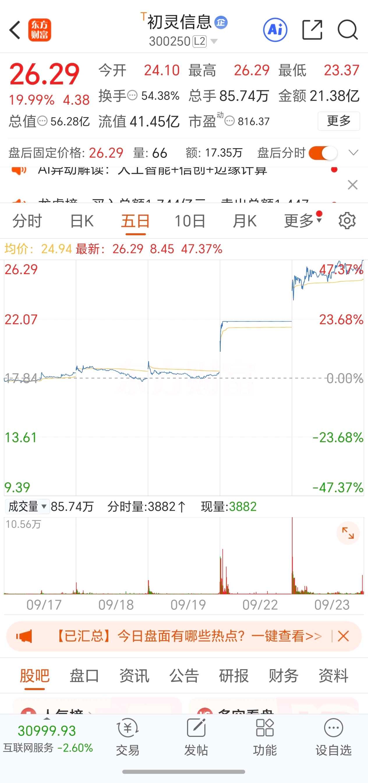 初灵信息:20CM2板,弱板,炒作参股摩尔线程(摩尔线程IPO上会)。