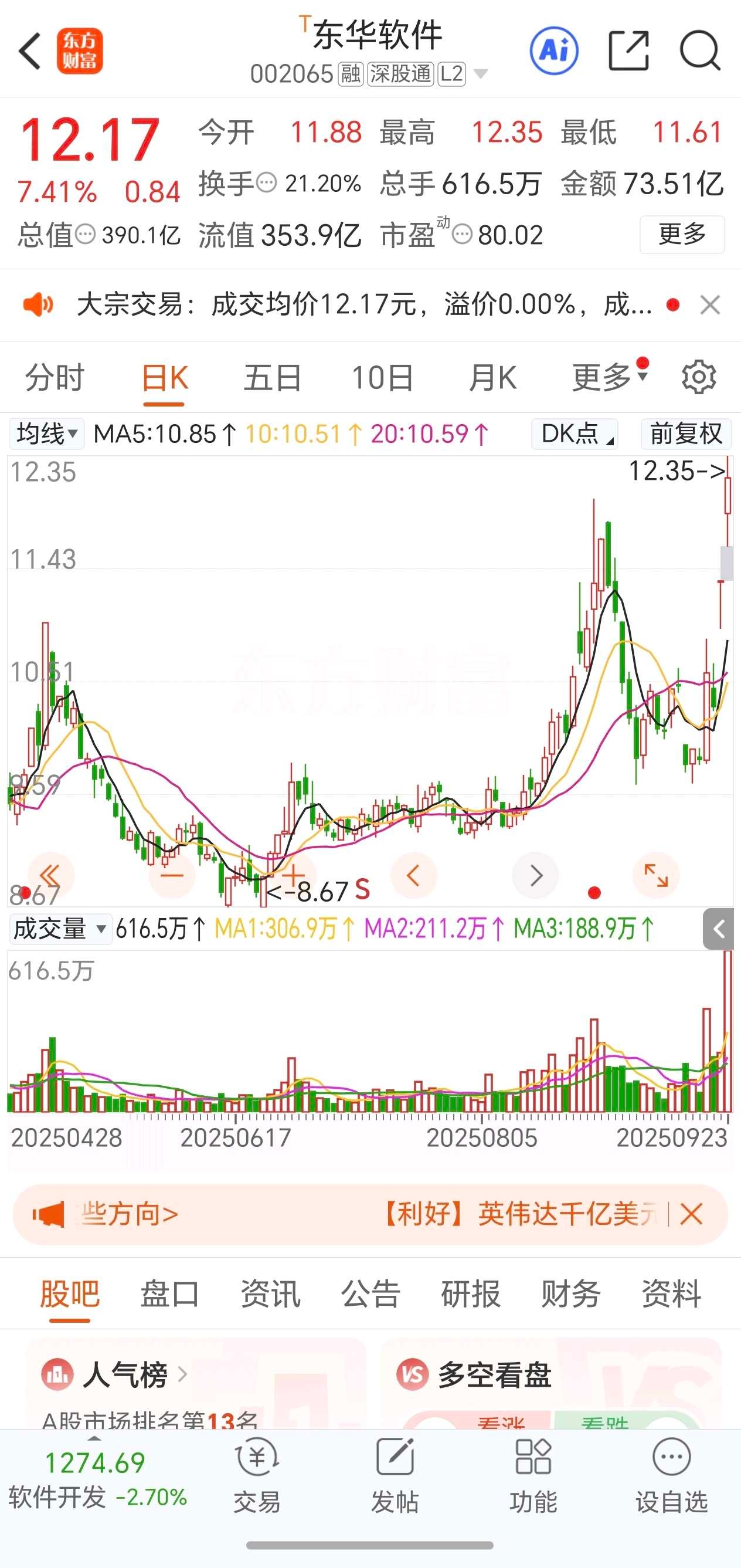 东华软件:1进2断板,炒作战略合作摩尔线程+AI大模型。