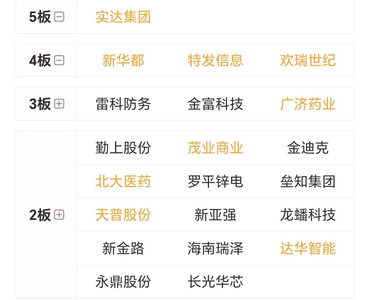连板高度不变,5板:实达集团。