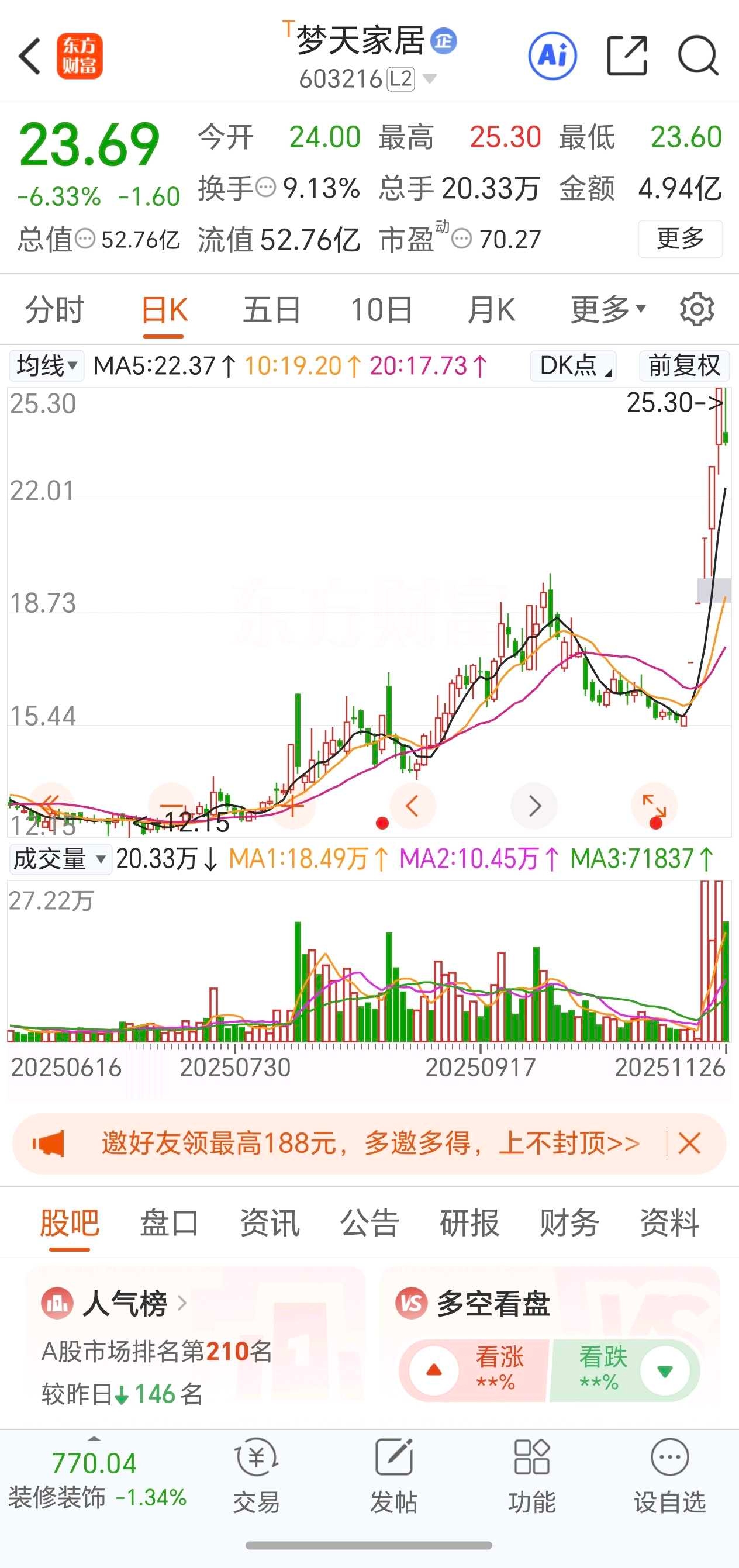 梦天家居:5进6竞价被核,炒作股权变更(终止)+家具。