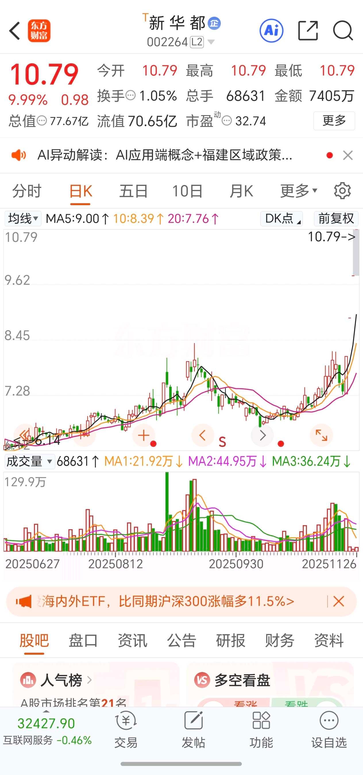 新华都:4板,强一字板,炒作AI应用+海峡两岸+阿里妈妈+跨境电商。