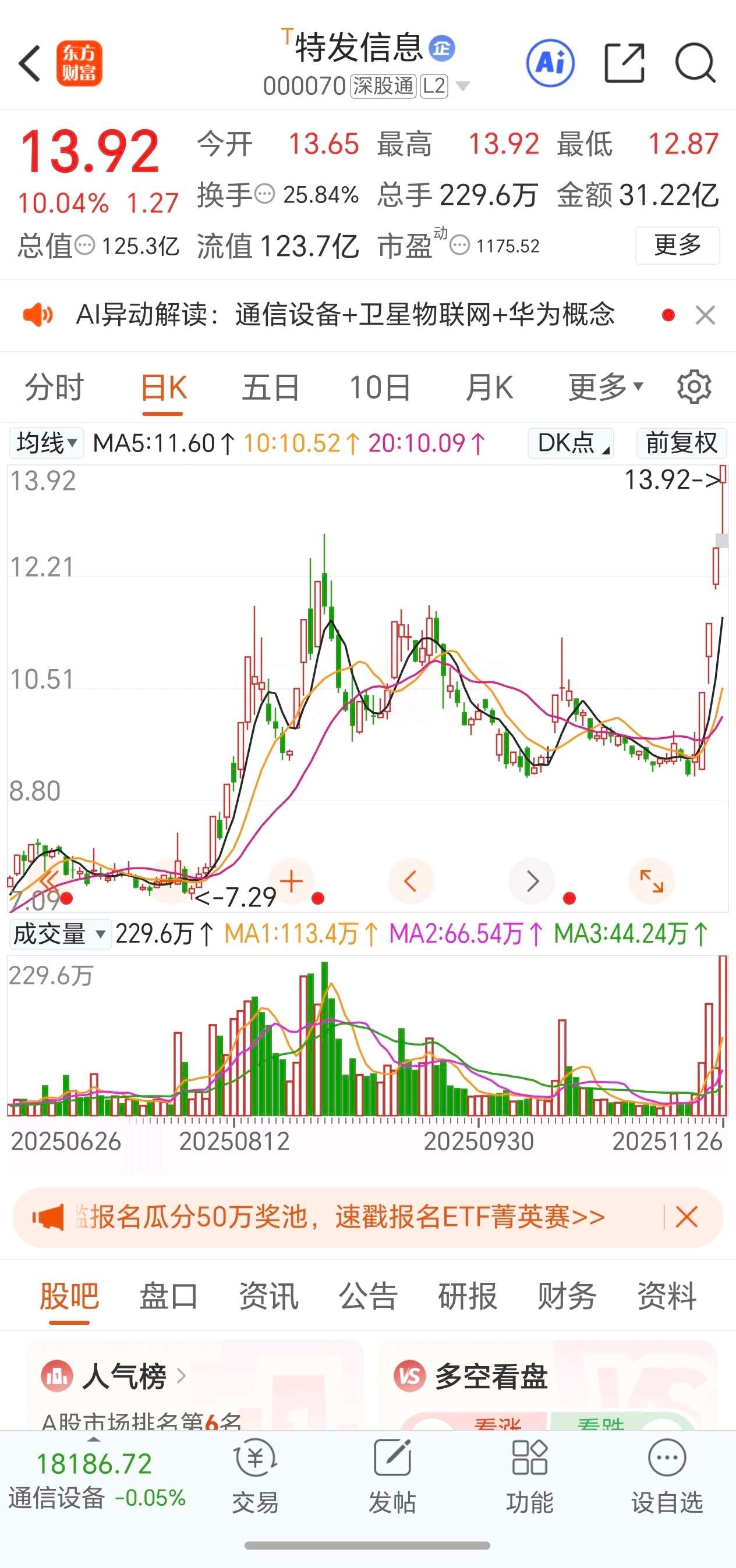 特发信息:4板,弱板,炒作光通信(谷歌)+空心光缆+深圳国资。