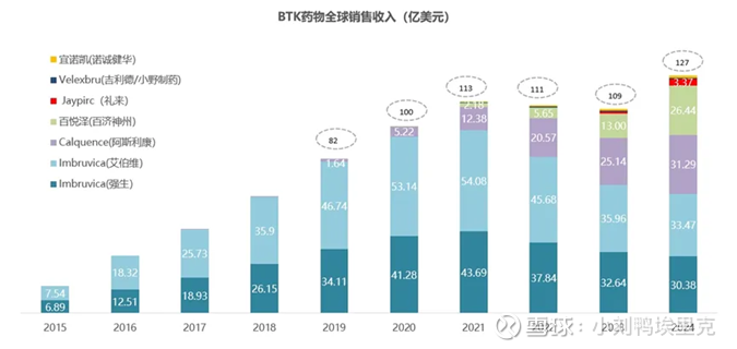 第一代(2013-2017年)药王伊布替尼(Ibrutinib):1999年Celera的华人化学家合成先导化合物,内部编号PCI-32765;2006年小公司Pharmacyclics接手,由时任CEO杜根(Bob Duggan)亲自押注,把全部身家砸进临床。2011年强生先付1.5亿美元+10亿美元里程碑拿下全球血液瘤权益;2015年艾伯维更以210亿美元收购Pharmacyclics,成为当年医药圈最贵并购之一,2021年全球销售额97.8亿美元,距“百亿药王”仅一步之遥,至今仍是BTK领域历史最高纪录。艾伯维收购Pharmacyclics的核心动机是填补“修美乐(Humira)”专利到期后的业绩缺口。伊布替尼作为当时全球首个获批的BTK抑制剂,具有巨大的市场潜力,其美国市场的商业化权益成为艾伯维转型的关键抓手。美国市场由艾伯维与强生联合商业化(商品名:Imbruvica)美国以外市场:由强生独家运营(中国市场由西安杨森操盘,商品名:亿珂)。这种划分源于2015年艾伯维对Pharmacyclics的收购,以及强生此前与Pharmacyclics的合作协议,二者共同构成了伊布替尼的全球权益体系。2021年,伊布替尼全球销售额达97.8亿美元峰值,其中美国市场贡献约40%,美国以外市场贡献约60%。这个case极其牛逼,杜根堪称医药圈第一掏兜侠,一鱼两吃,他是把不到一半权益的伊布替尼210亿卖给了艾伯维,简直牛逼炸了。咱们后续看这位传奇掏兜侠老白男能否在SMMT给康方创造传奇。