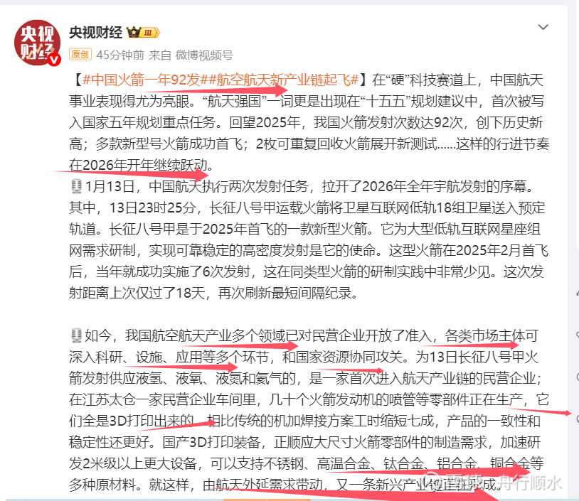 根据银邦股份公告信息,公司于2012年出资设立飞而康,初始持股比例为45%,后续经员工持股计划增持和股权转让,公司持股比例下降为17.27%。飞而康主营业务是金属3D打印(增材制造),通过3D打印生产的零部件主要应用于飞机、火箭、航空发动机等航空航天领域。2025年12月蓝箭航天朱雀三号遥一运载火箭在东风商业航天创新试验区成功发射并进入预定轨道。此次任务中,飞而康为火箭核心动力系统——天鹊系列液氧甲烷发动机提供核心构件。
