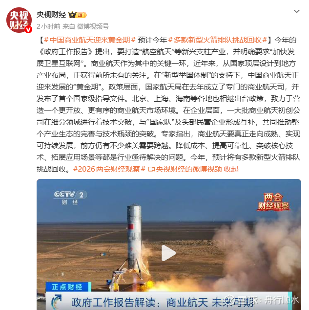 商业航天要实现规模化应用,核心在于降低成本。而火箭的可回收技术,被视为降低发射成本的“金钥匙”。据了解,今年预计将有多款新型火箭排队挑战回收技术。这不仅是技术实力的展示,更是商业闭环形成的关键一步。