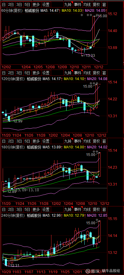 601133(柏诚股份)今日以涨停报收,靠近第一目标位,接下来跟各位一起对601133(柏诚股份)这波走势进行复盘,首先来看日内四个重要时间周期走势情况: