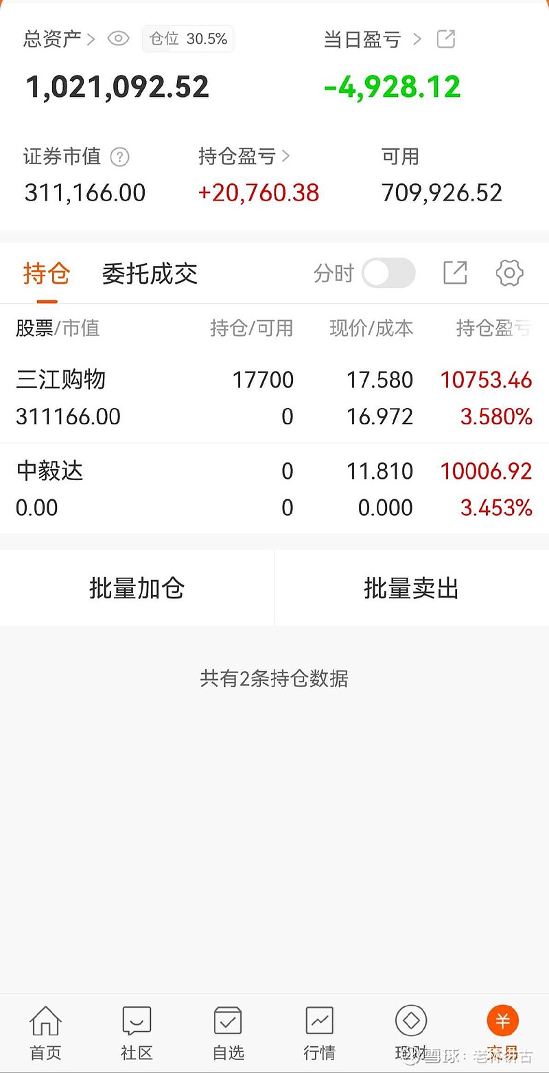 $三江购物(SH601116)$30-100目标完成,下个目标200,实盘记录2.2 星期一中毅达 周五有冲上,没出,今天来水下跑,失策,不过长期看好滴,留下的发三江购物 入今天大盘有点凶啊,不过这波一步到位,未来会更好。