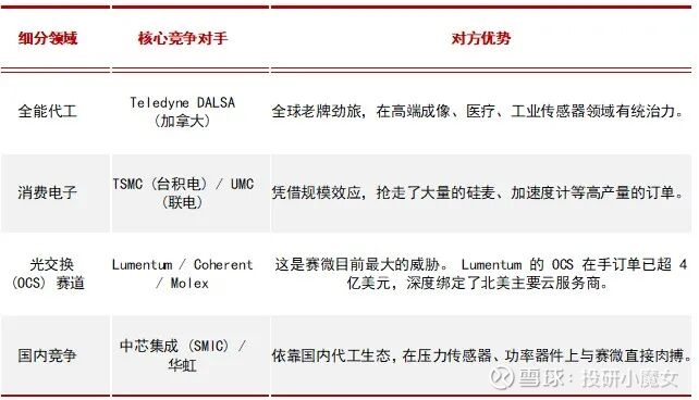 赛微虽然号称全球纯代工第一,但在不同细分领域,对手极其强悍: