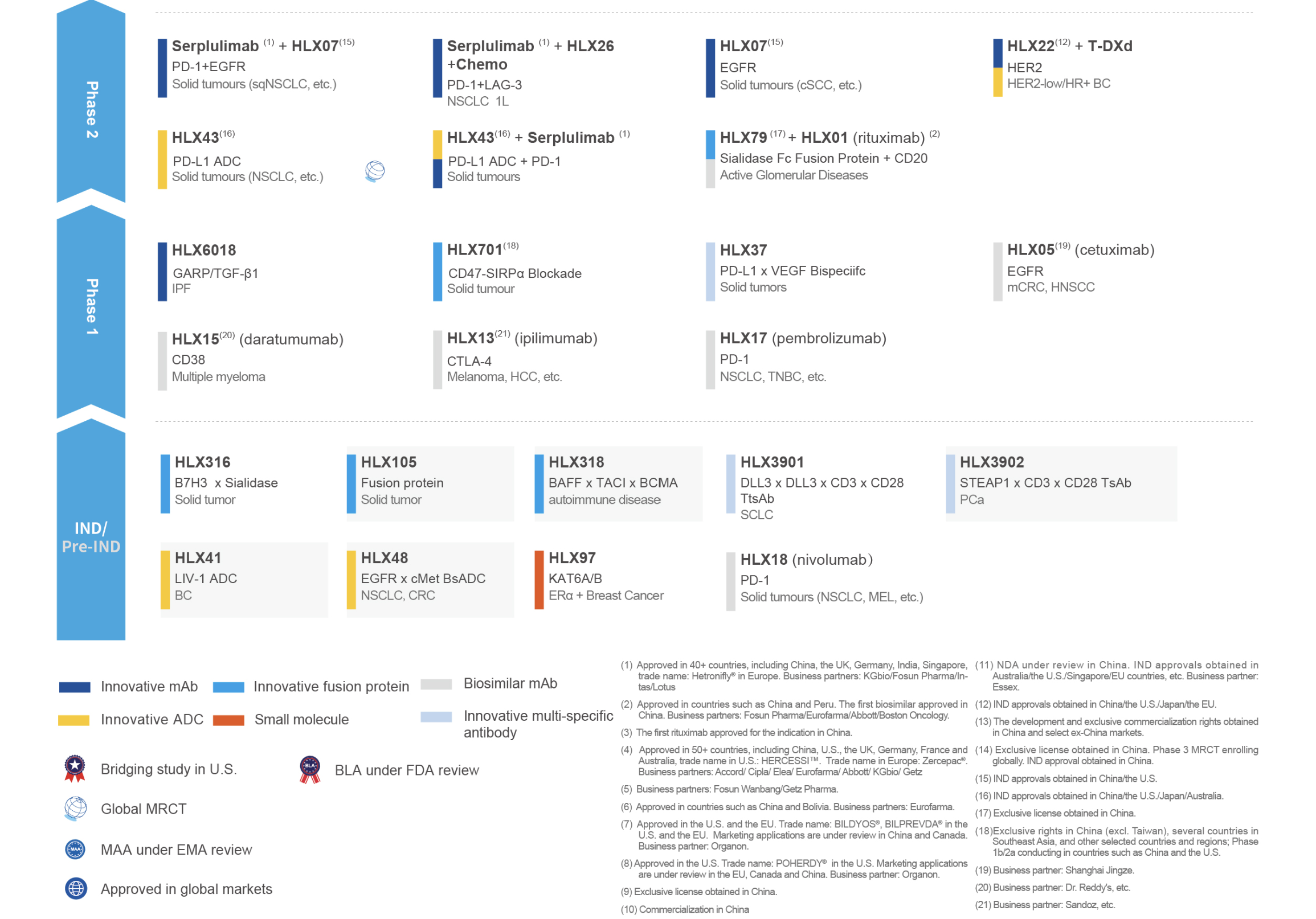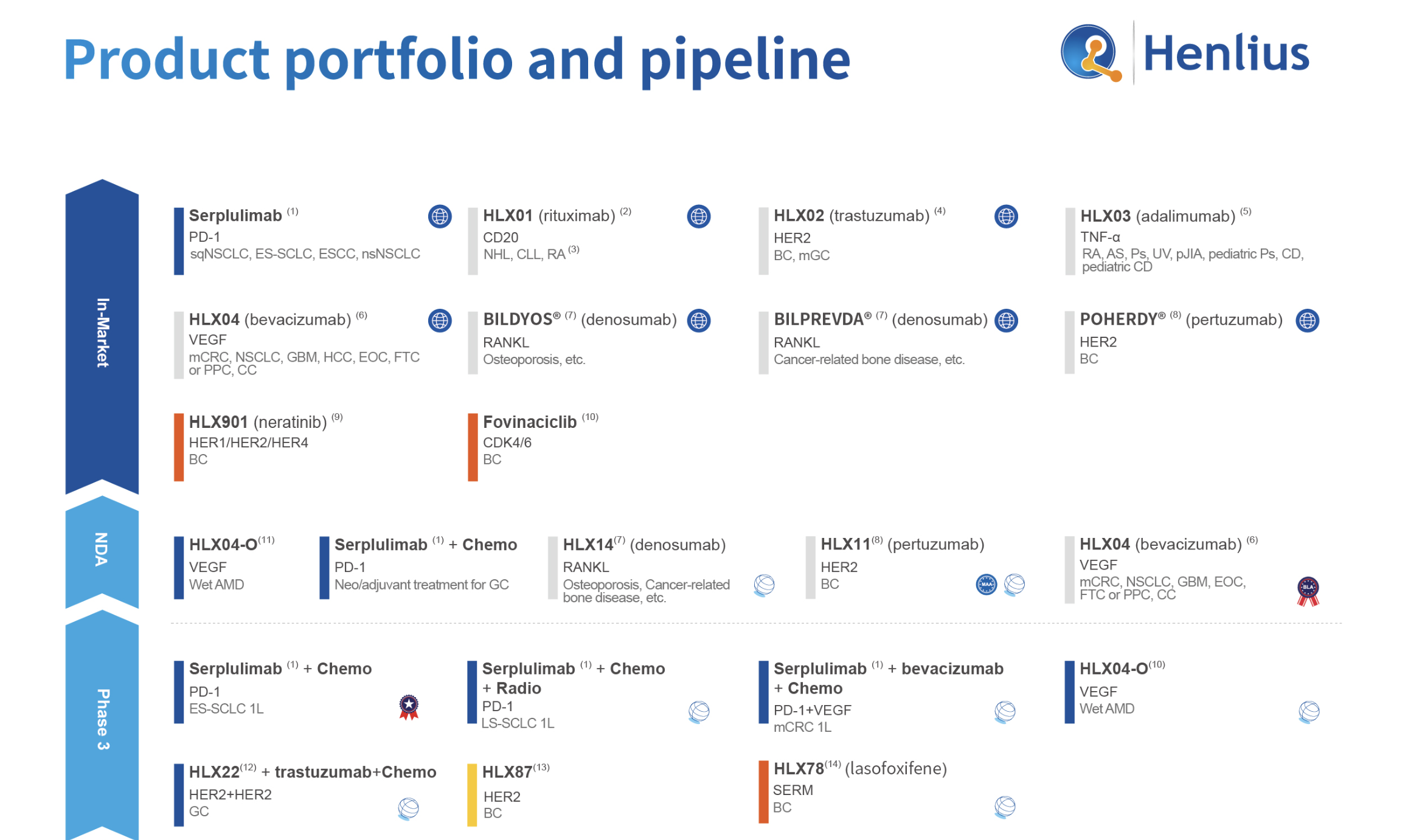 如下是管线图一览,可以看到在研管线品类丰富,涵盖单抗、多抗,融合蛋白,小分子等创新管线。公司在生物类似药和创新药之间采取了平衡策略:一方面依托生物类似药业务所积累的能力和现金流,持续支持创新药研发;另一方面,最终以创新药驱动公司的长期增长。