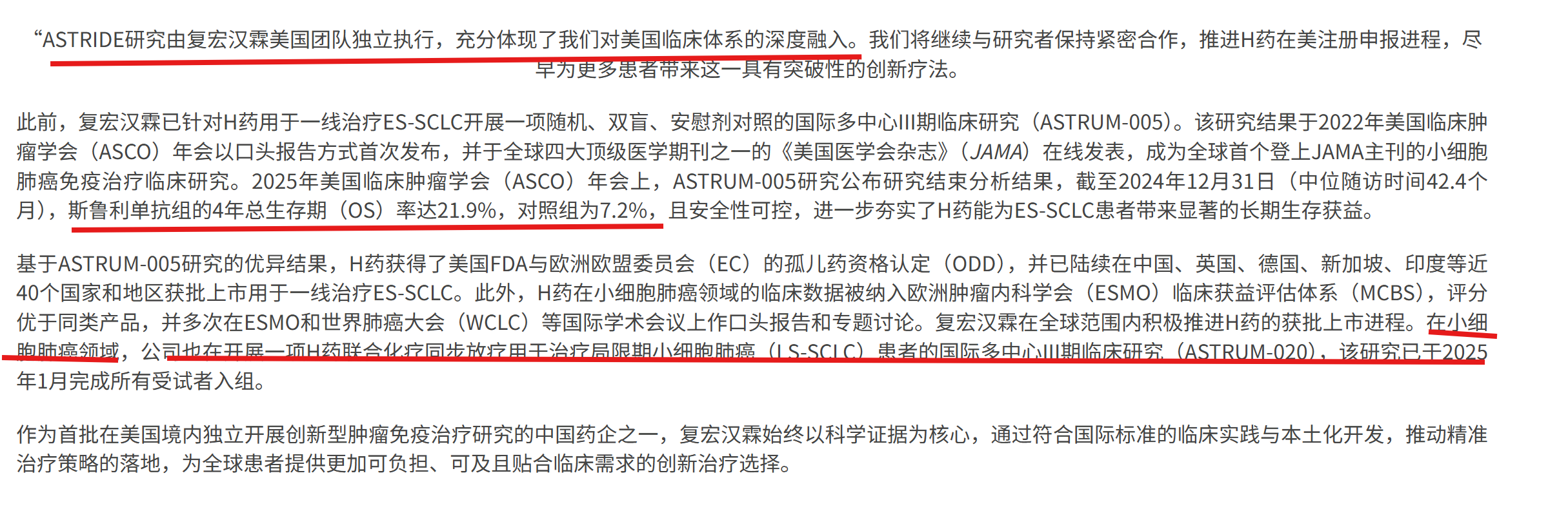 本篇来捋一下小细胞肺癌赛道里的另一个玩家复宏汉霖。