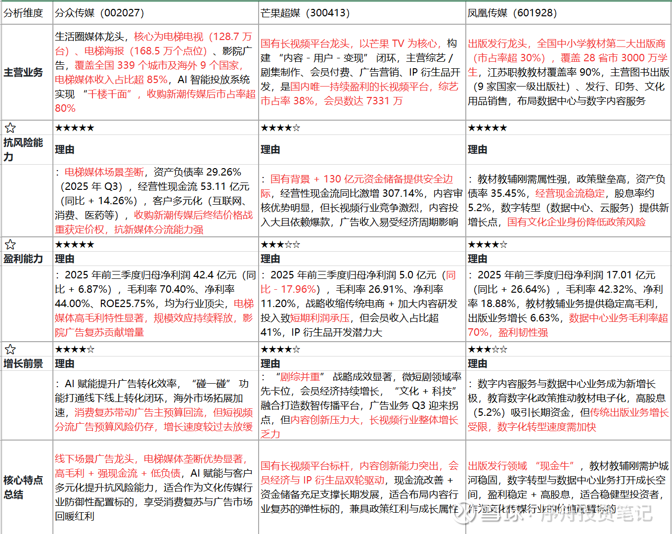 同花顺综合市场地位等因素,在这个行业板块选出的3家龙头企业分别是:分众传媒、芒果超媒、凤凰传媒
