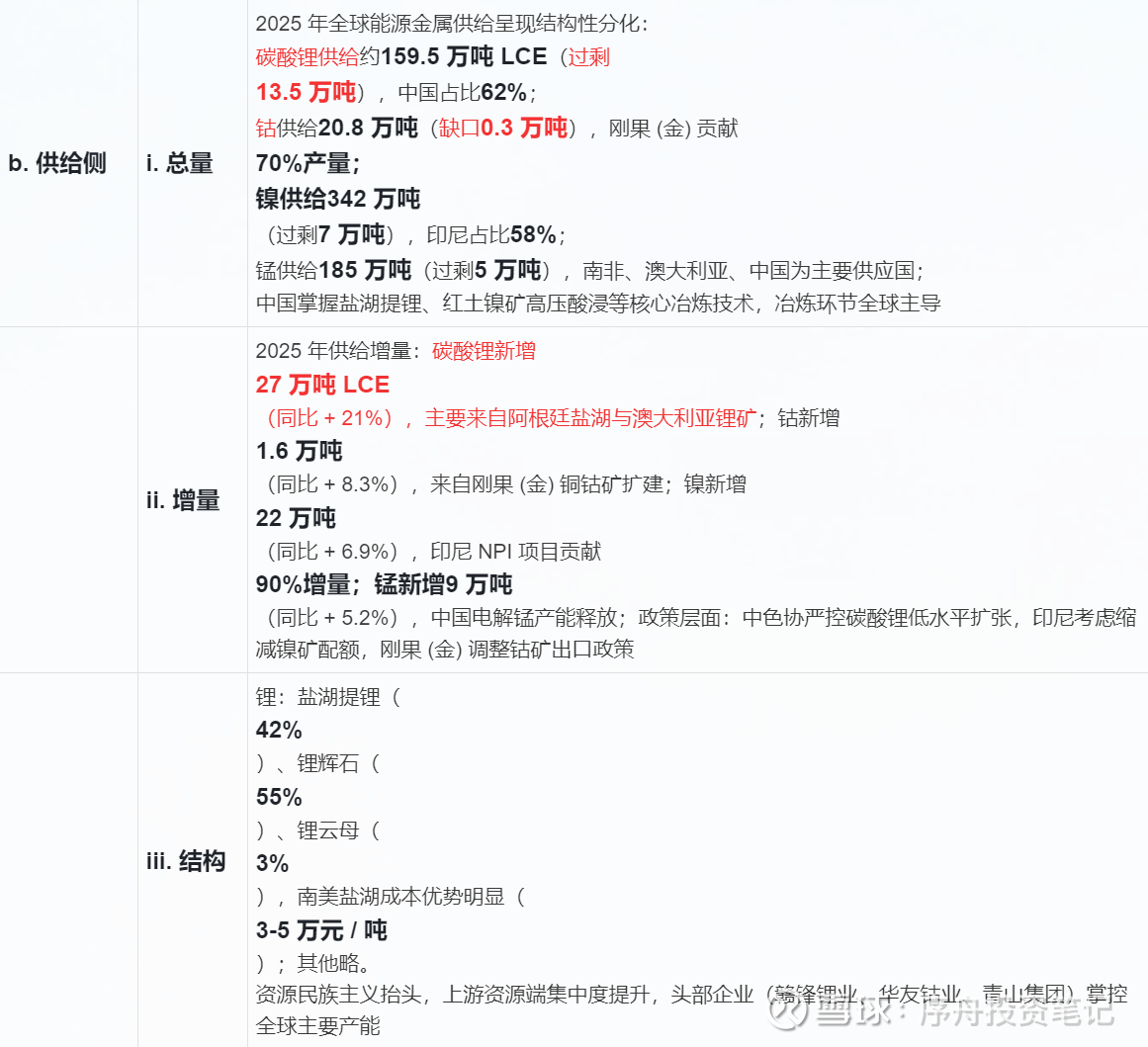1.能源金属整体需求持续增长,锂,短期供给过剩,钴,存在供需缺口,支撑价格上涨。
