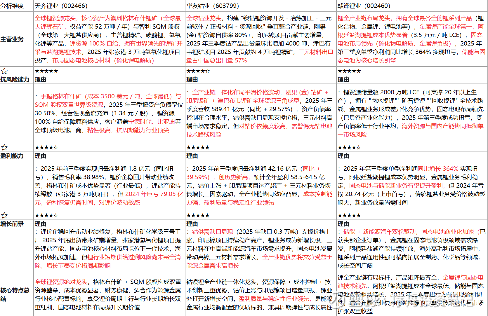 $赣锋锂业(SZ002460)$ :锂全产业链布局的细分龙头,储能和固态电池是核心增长引擎。除了盈利完全恢复还需要点时间,三个维度均无明显短板,本期入选股票池。