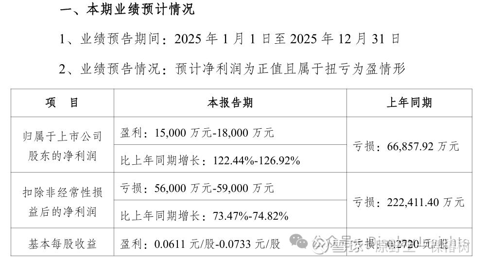 近日,天马微电子股份有限公司(证券简称:深天马 A,证券代码:000050)发布 2025 年度业绩预告,公司全年实现扭亏为盈,归属于上市公司股东的净利润预计为 1.5 亿元至 1.8 亿元,较上年同期的亏损 6.68 亿元大幅改善,同比增长 122.44%-126.92%;基本每股收益盈利 0.0611 元 / 股 - 0.0733 元 / 股,上年同期为亏损 0.2720 元 / 股,盈利能力显著提升。