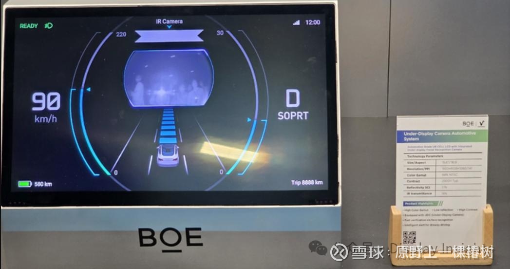 京东方在今年 1 月举办的 CES 2026展上,首次公开展出了 15.6 英寸搭载 UDC 技术的车载显示器,并公布了具体性能参数:该产品分辨率为 1920×1080,像素密度(PPI)达 141,红外摄像头的透过率为 18%。