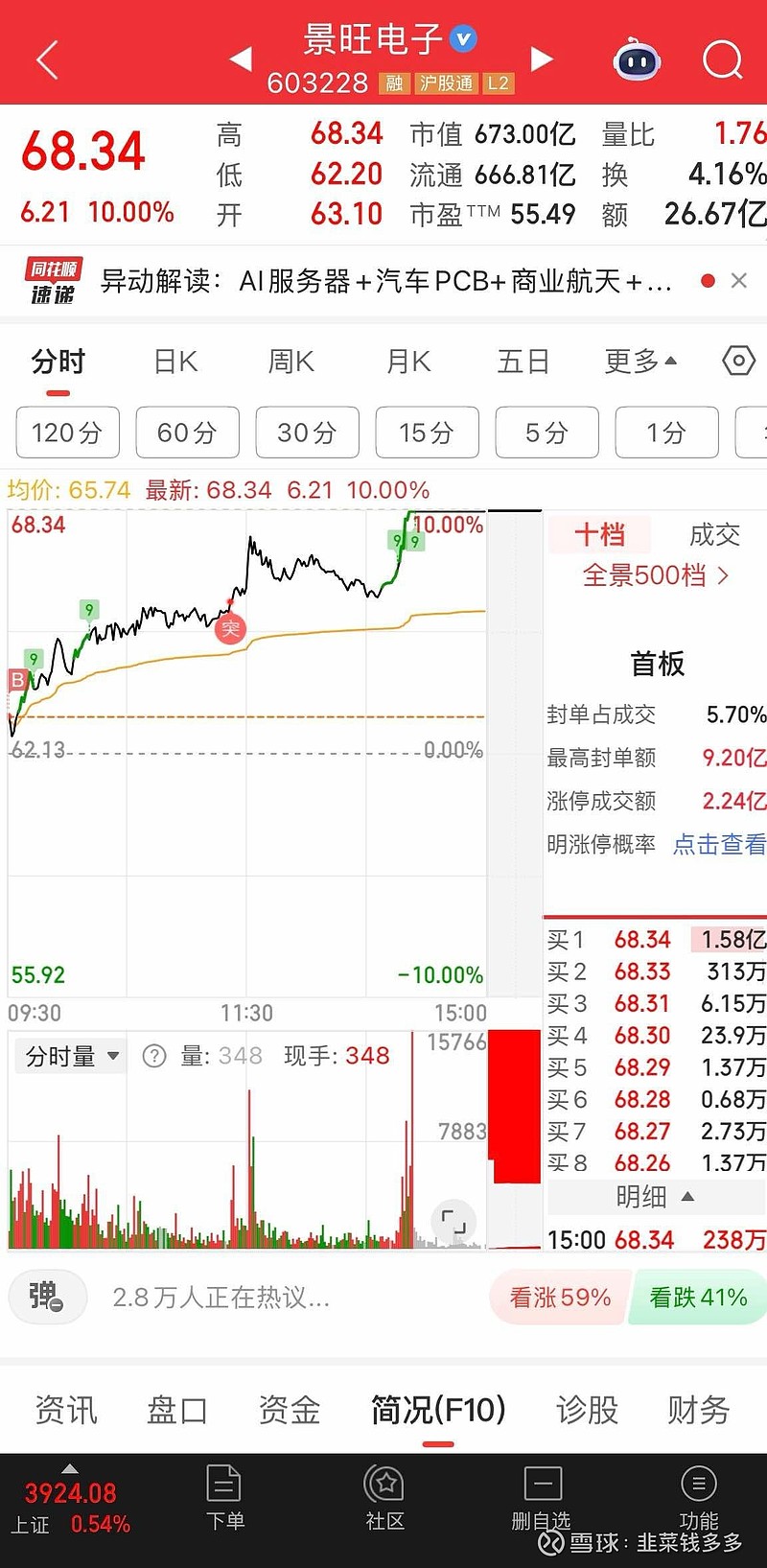 CPO上周大涨 PC B没理由不涨,叠加商业航天的就复盘出了$景旺电子(SH603228)$ 。关键调整也到位了。开盘竞价就买入。