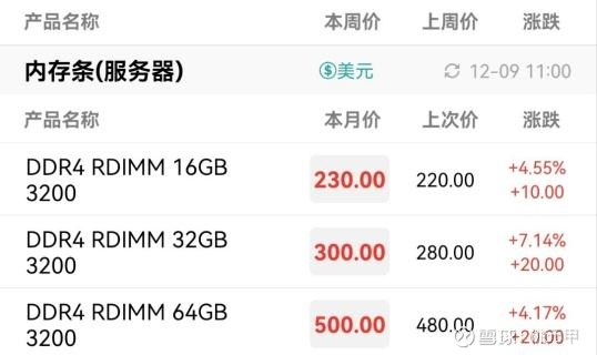 以DDR4 64GB报价为例,今日12月9号的报价比11月11号报价上涨了20%