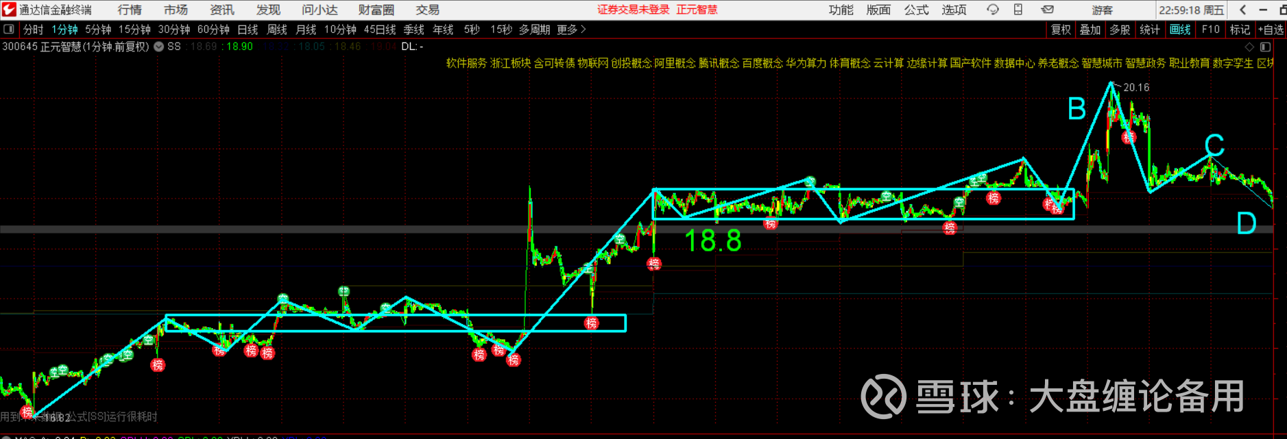 1、AB是一个趋势走势:A开始的第一个一分级别走势到点B为止 以一分级别的趋势背驰的方式结束,B之后需要完成一个走势连接。