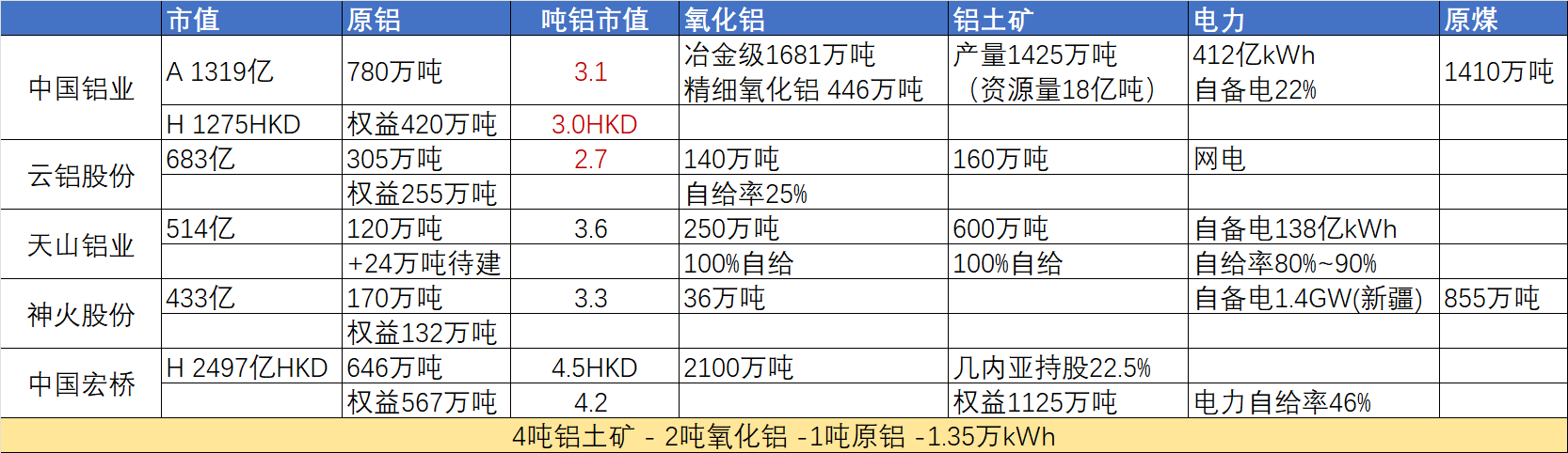 宏桥的优势在于:1)上下游一体化,并且还有大量氧化铝外供,同时去年氧化铝高价。2)自备电厂优势,宏桥自备电厂在山东,但是山东有250万吨产能要转移到云南,一方面低电价成本优势削弱,另一方面原来的山东自备电厂可能面临资产减值的问题,同时云南新产能还涉及资本开支。3)地理区位优势,宏桥铝土矿从海外运到山东,具备低成本优势,这部分产能还保留在山东。4)民营企业的管理优势。