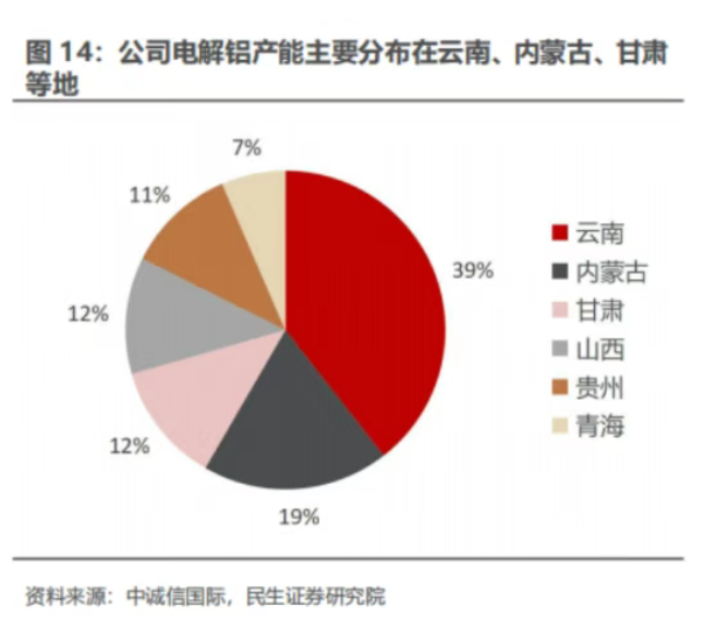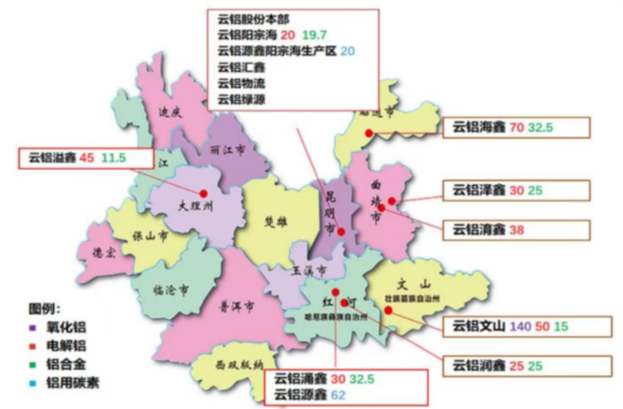 除了云铝股份的云南产能外,中国铝业自身的电解铝产能主要在内蒙、甘肃、山西、青海等地。其中云南和贵州靠近铝土矿&氧化铝资源;内蒙、甘肃、山西、青海靠近低成本能源。