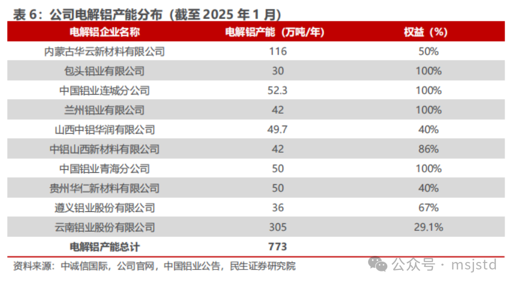 遵义铝业电解铝产能36万吨(氧化铝105万吨+铝土矿280万吨),24年净利5亿。