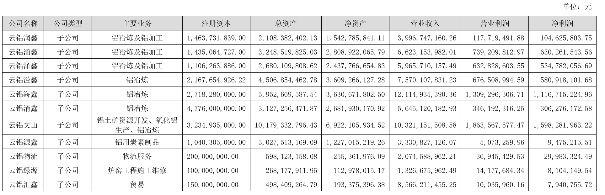 云铝淯鑫电解铝38万吨,24年净利3亿。