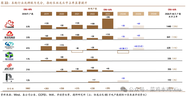 所以,如果桐昆股份带头反内卷,不以产能为目标;个人预计新凤鸣也会跟随。至于长丝行业其他同行,盛虹/恒逸/恒力/荣盛的重心基本放在炼化和石化新材料方向了,2023年以来在长丝行业扩产得也很少了。