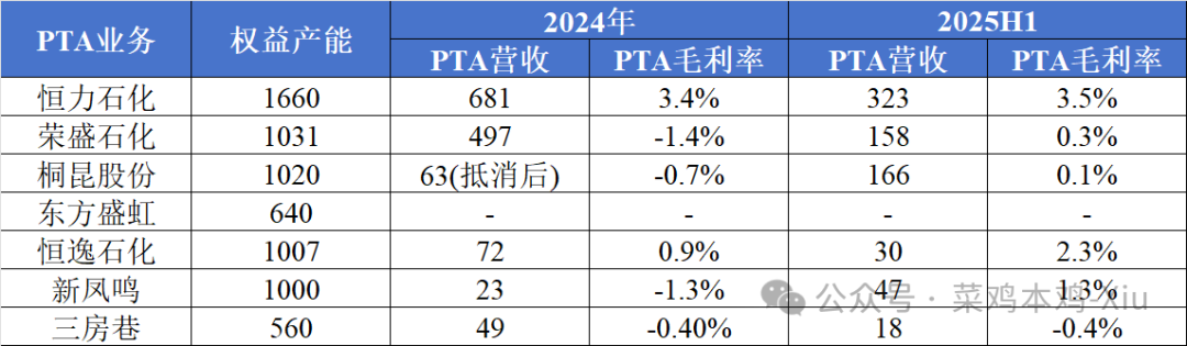PTA产能高光时刻在2011年,恒逸石化PTA产品毛利率15.6%,2012-2017年在4%-5%左右,2018年6.4%、2019年8.9%、2020年11%、2021年4.6%、2022年-1.4%、2023年-0.85%、2024年0.87%。