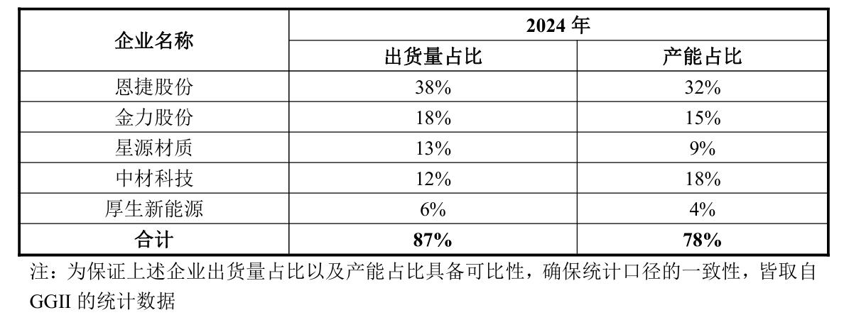 龙一是恩捷股份、龙二是金力股份(今年1月份被佛塑科技全资收购了)、龙三星源材质、龙四中材科技。行业集中度还蛮高的,而且对比产能占比和出货量占比,也能看出点东西来。