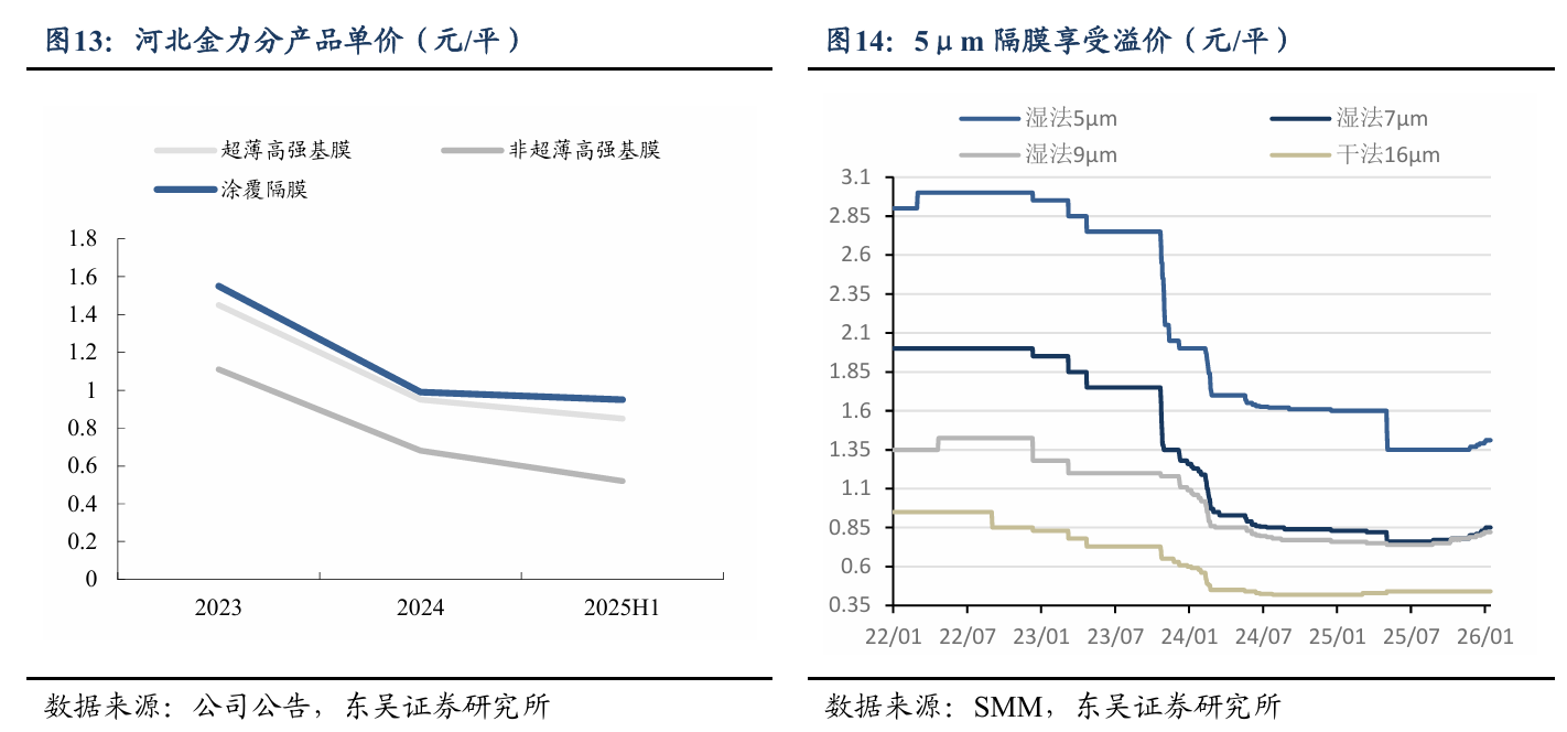 不过产能总量之下,要关注结构性差异。越薄的隔膜,越贵。同样的产能,卖5μm和卖16μm,定价是不一样的。