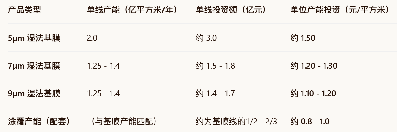 这是找AI整理的不同产线的投资成本,可以自行估计一下项目的投资回收期。好像涂覆的钱也不好赚。璞泰来可以自己生产设备,投建和折旧成本比同行低一些,这是它的竞争优势。