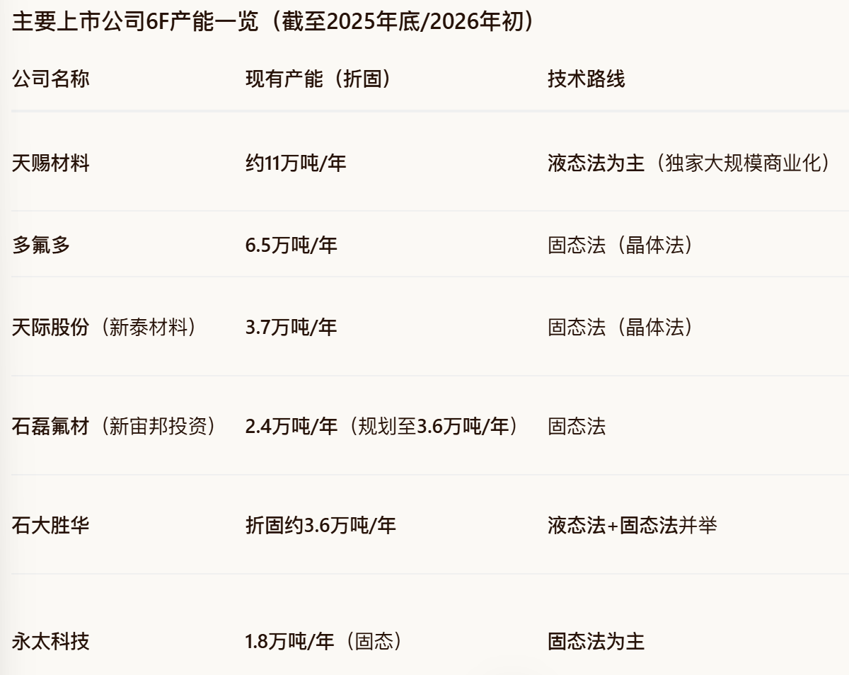以下是找AI帮忙整理的主要公司6F产能情况。在未来扩产方面: