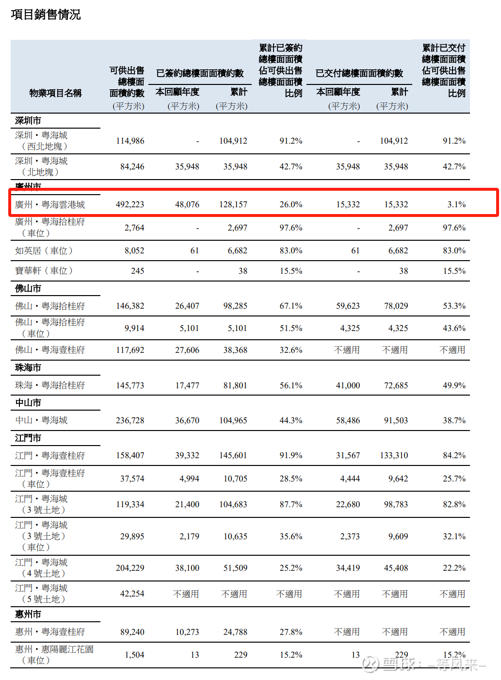 一、利润表,下半年多收入39亿,比上半年28亿多出40%,但毛利润环比多出了6.6-1.16=5.4亿(图1)。再看销售表,营业额毛利增量是广州云港城交付了1.5w平(图2),这个直接贡献了估计5亿毛利!这点非常重要。为什么能这么推测呢,因为粤海的项目少非常透明,其他佛山惠州中山楼盘按去年下半年行情只会比上半年差不会好,这部分变化非常有限,明显的增量只可能来自云港城项目。可以简单推测云港城项目毛利:5亿/1.5w平=3.3w/平的毛利。非常可观、直观、透明!