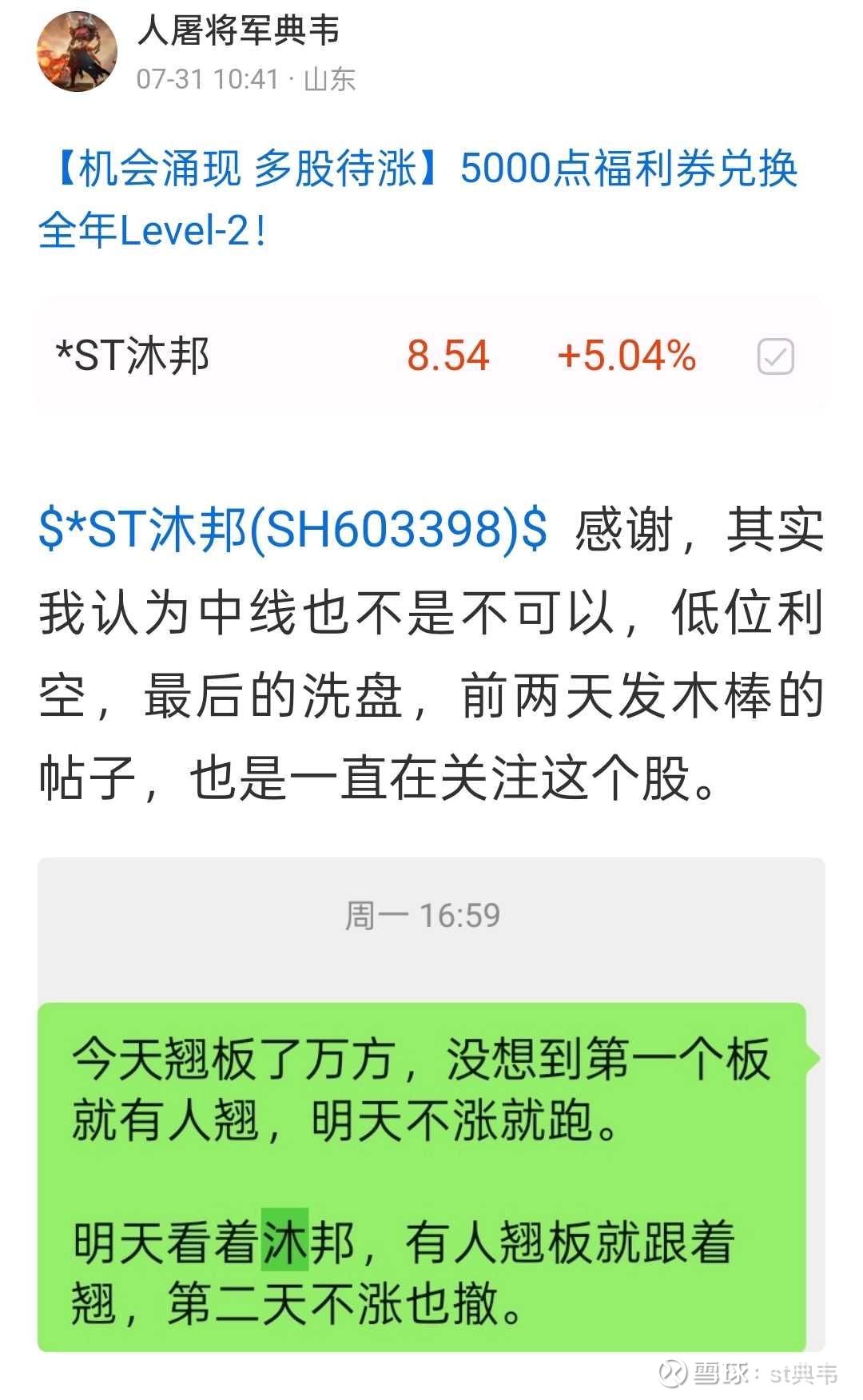 沐邦我在七月28周一给铁粉说的第二天翘板成本4.46元,公开是在7月31日5元。目前8.54。铁粉翘板收益91%,公开后涨幅60%,没抄袭任何人作业。正平就更不用说了,一共做了两波收益率也早就超100%