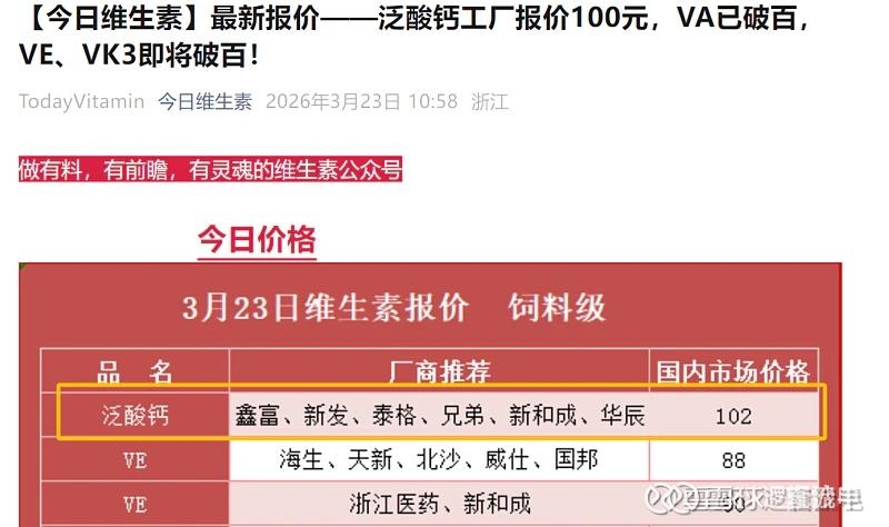 $华恒生物(SH688639)$ $新和成(SZ002001)$ $亿帆医药(SZ002019)$ 别忘了泛酸钙华恒也有 5000 吨产能 ,价格从去年的每吨 3 万 5 涨到 10 万了。想当初 2021 年泛酸钙可是一口气从 7 万 5 涨到 35 万的,需求刚性,价格空间巨大。而华恒生物是这几个厂家里面市值最小的