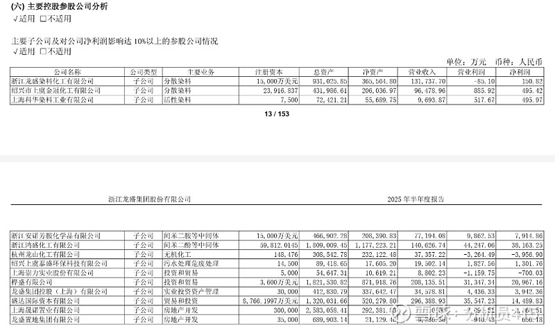 第一部分. 浙江龙盛2024年报和2025上半年年报业务解读