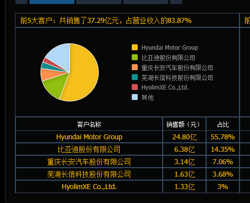 公司的核心产品是汽车仪表盘,公司的缺点很明显,就是高度依赖于现代汽车的订单,但公司的优点也很明显,公司正在不断拓张自己的客户群,目前已经和比亚迪,长安汽车,大众集团等都有合作了。