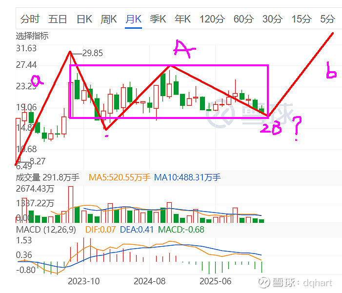 应球友要求分析一下,月线级别盘整上走势,上涨中枢A基本构筑完整,等待最后一个完结点2买形成,现在是建仓位置。