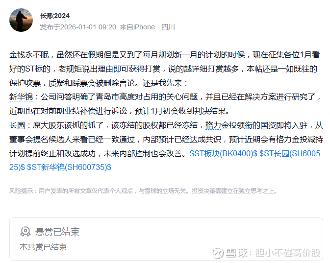 这位大V在我眼里是个经典技术派,很遗憾,他元旦的这篇悬赏发布后,直到1月4日,才有人认认真真的提及花王,整个悬赏贴在假期里,提及花王的也屈指可数。(有趣的是,1月8日,公告提示财投解禁交易的第一天,这位大V突然公开表示已经在花王建仓并发布实盘截图,感兴趣的可以跟踪这位大佬的后续言论,值得参考。)