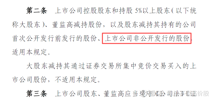 而对于这种所谓的“特定股份”,或者对于非公开发行股份的减持要求的说法,官方条文的出处,其实是源于2017年证监会发布的《上市公司股东、董监高减持股份的若干规定》,同样证监会官网可查可下载。
