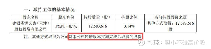 可反过来讲,只要我能找到相应的案例,证明哪怕是持股5%以下的非大股东、非董监高身份,没有一致行动人约定的普通财务投资人,哪怕它持有的是非IPO原始股,也依然发布了减持计划,那花王财投减持股份无需提前发布减持计划这个观点就是不成立的,同时也证明,对于非公开的资本公积金转增股,就是应该提前发布减持计划,对吧?