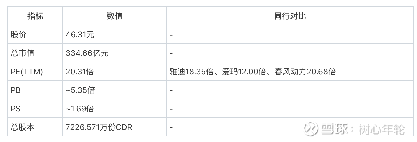 PE(TTM) 20.31倍,与同行对比处于什么位置?雅迪(18.35倍)和爱玛(12.00倍)是纯电动两轮车企业,增速远低于九号(雅迪营收增速个位数,爱玛略高)。春风动力(20.68倍)是户外动力设备企业,与九号的全地形车业务可比。九号公司20倍PE对应50%+的营收增速和80%+的利润增速,PEG约0.25-0.4(PE/利润增速),从PEG角度看明显低估。