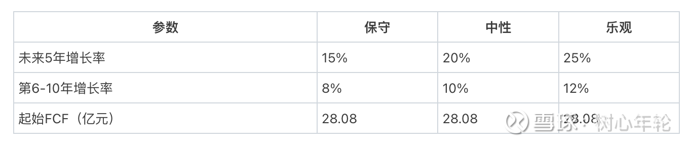 2024年自由现金流作为DCF起点:28.08亿元(考虑到公司处于加速增长期,使用最新年度更合理)